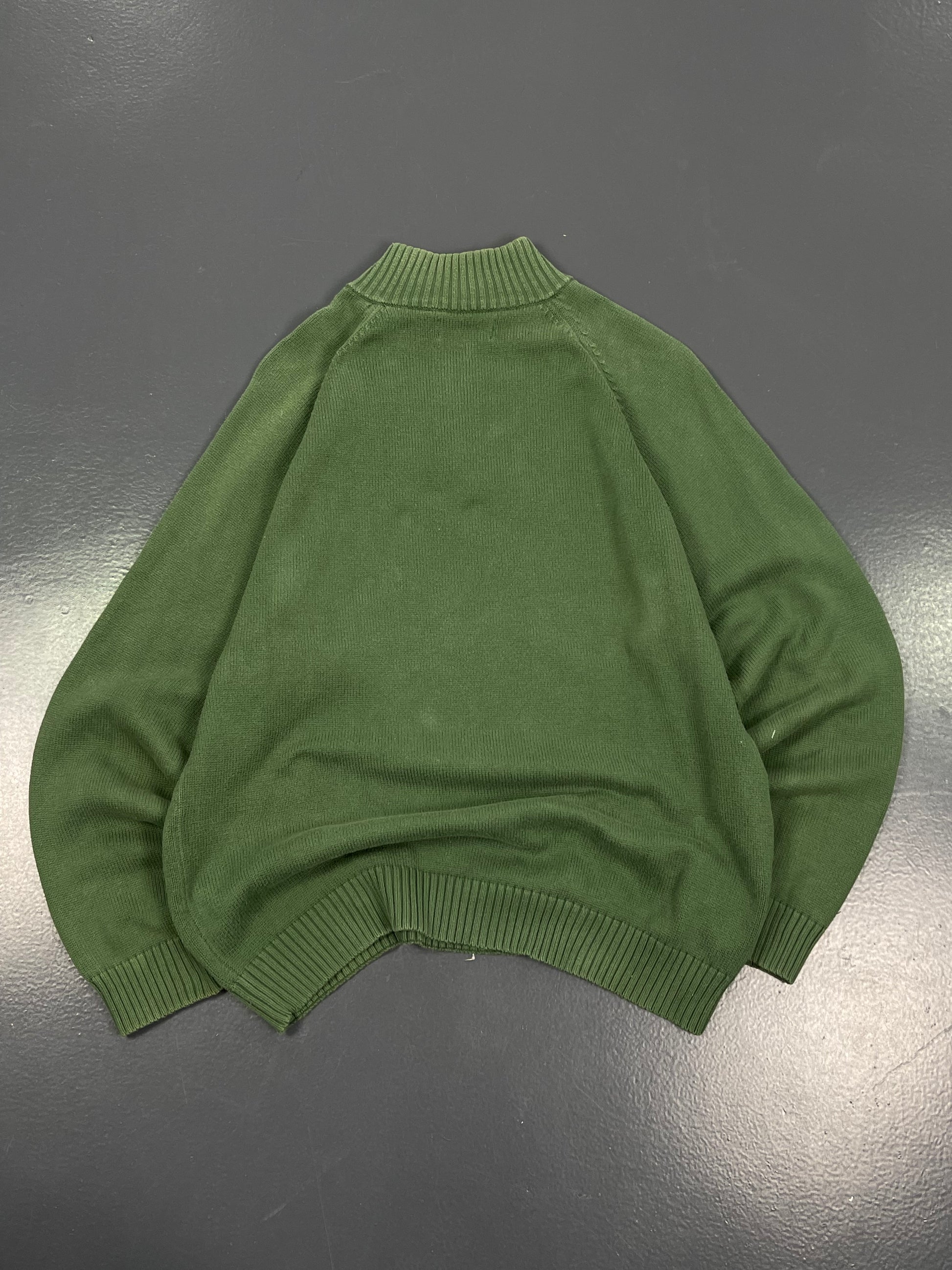 Descripción: Jersey con cuello alto de marca Fred Perry de color verde, con diseño a rombos, con logo bordado en el pecho
